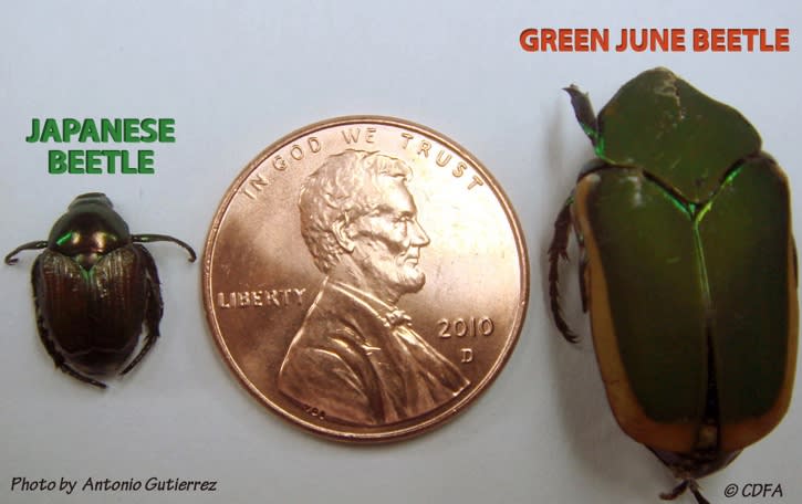 A Japanese beetle, left, is much smaller than most people think.