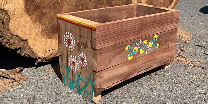 Tools and supplies will be provided and the workshop is open to all ages. The wood is pre-cut but will be assembled and decorated during the session. Then take home the planter and enjoy.
