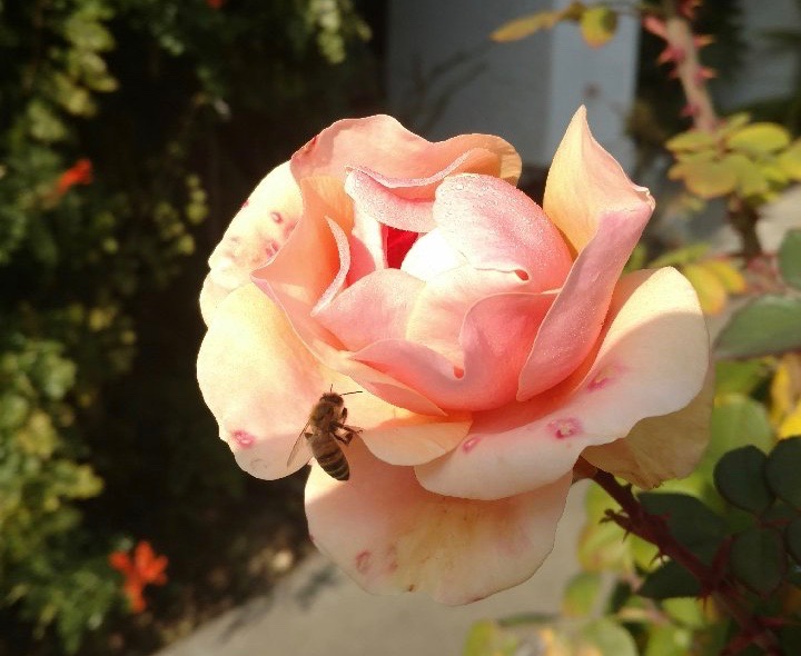 This bee appreciates a Marilyn Monroe rose