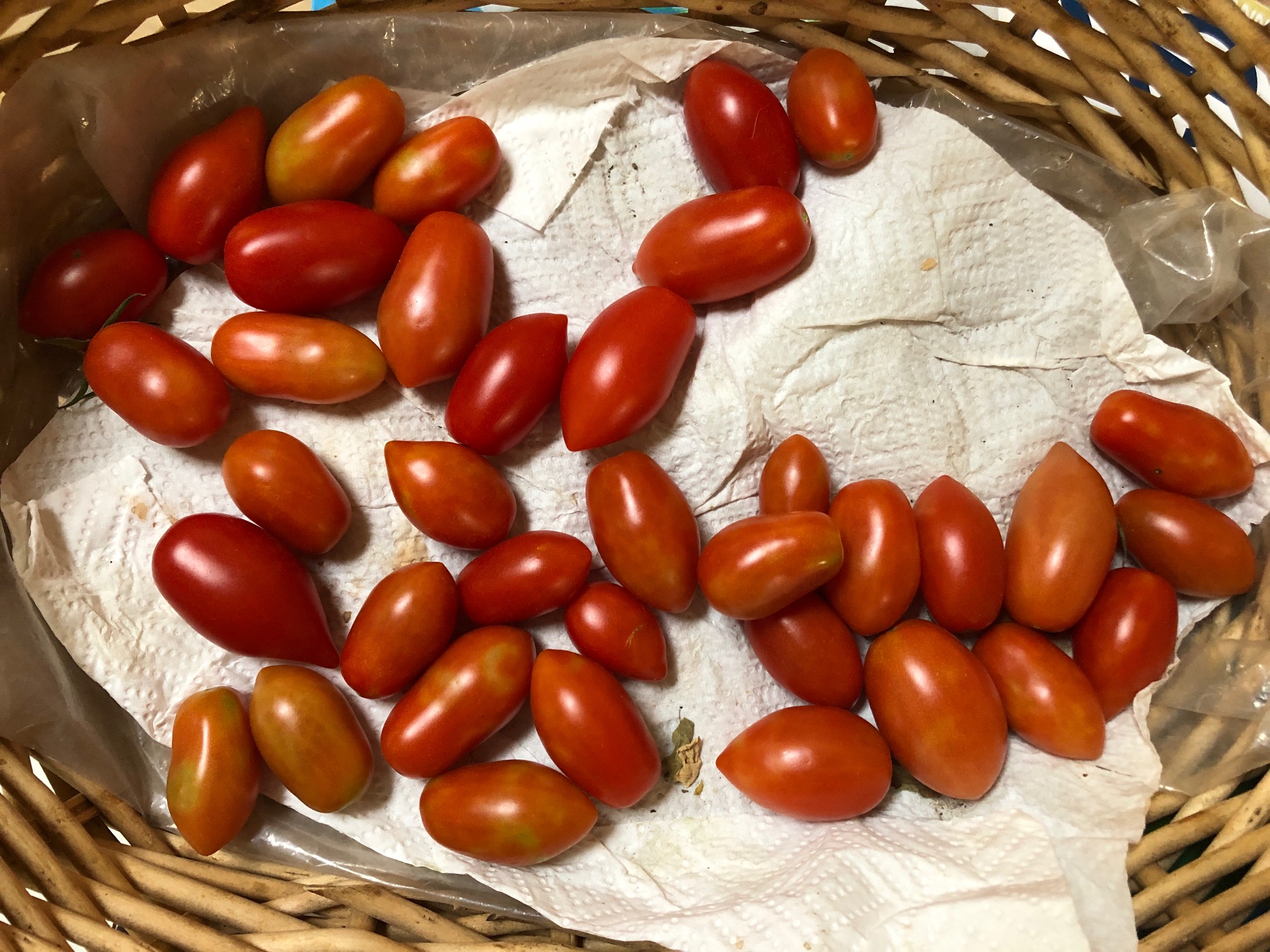 At least until the weather drops into the low 40s overnight, the green ones will turn red on the plant. They ripen faster inside on the counter. My Juliet tomato, a cherry tomato that resembles a Roma, is the last one standing in my garden, and it's the size of two plants. It produced a huge amount of flowers in mid-September, and now it has green and "blushed" tomatoes all over it. I picked several Wednesday and, as you can see in the photo above, many are close to fully ripe already.