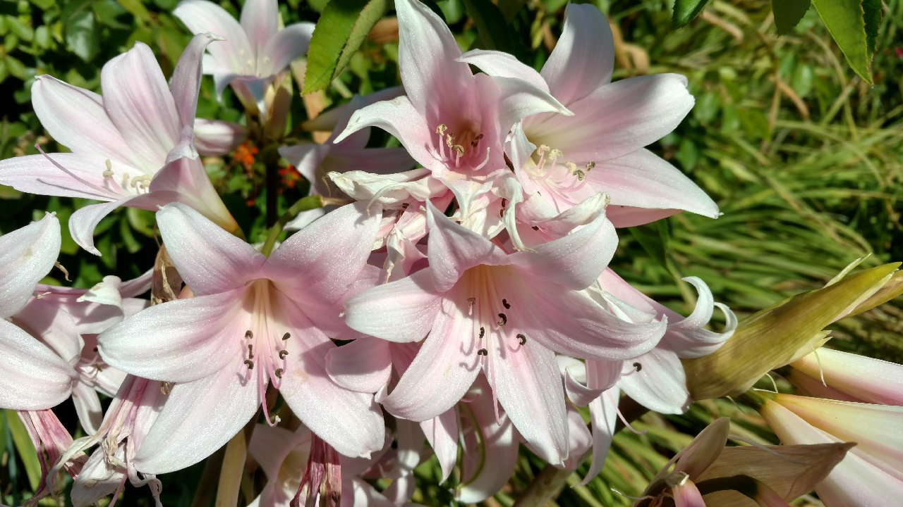 Amaryllis belladonna is a favorite with perfume makers -- as well as with bees. (Photos: Debbie Arrington)