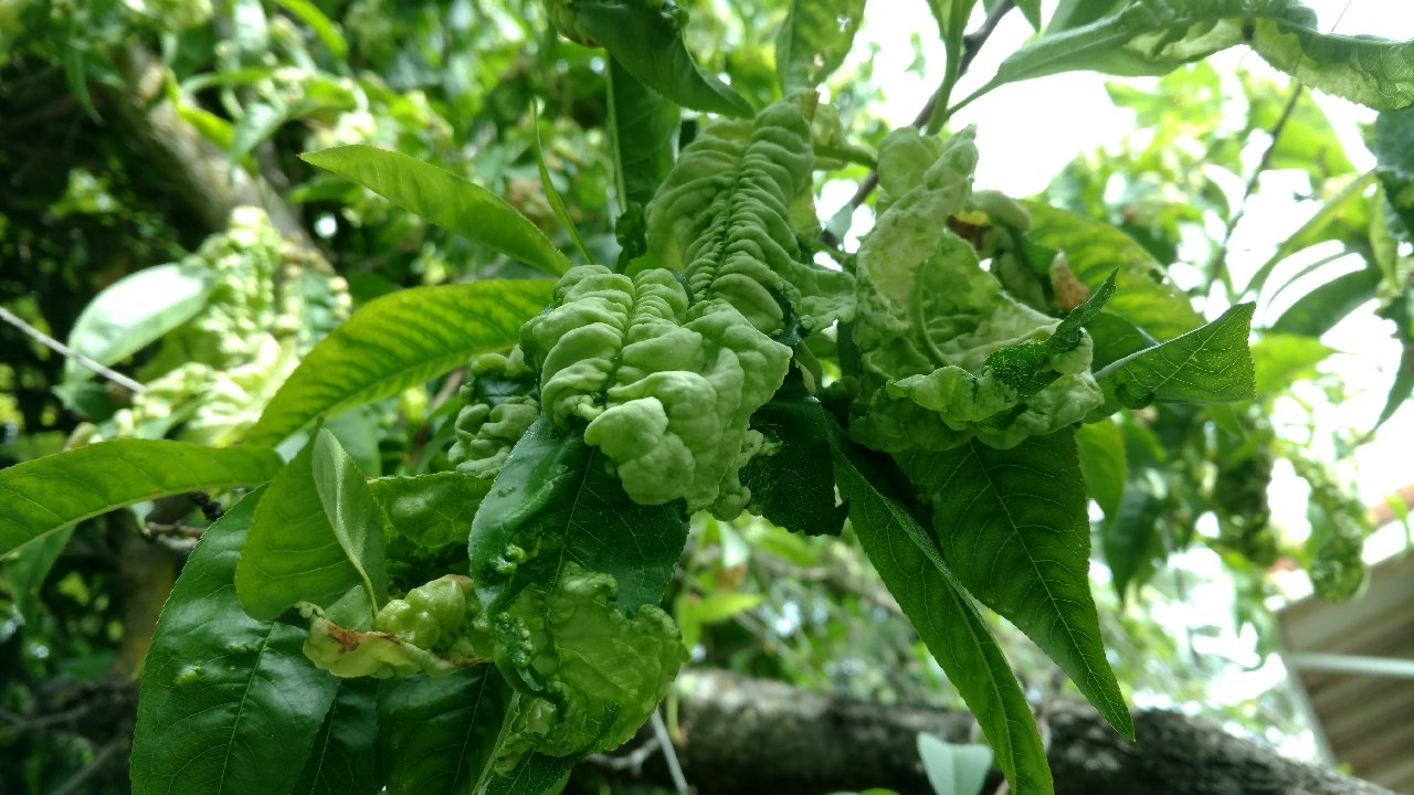 | Those red splotches are a telltale sign of leaf curl. |