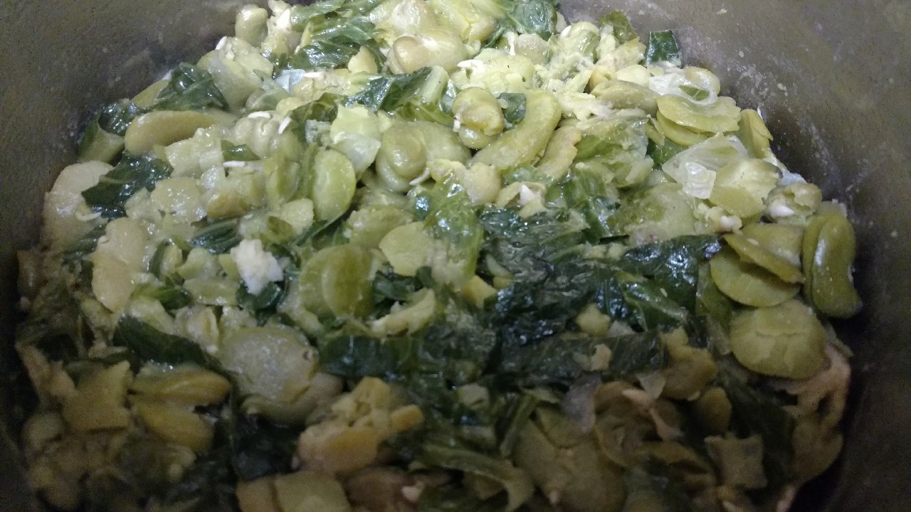 This is my favorite way to cook fava beans. Besides serving as a side dish, it also doubles as fava spread for crostini.